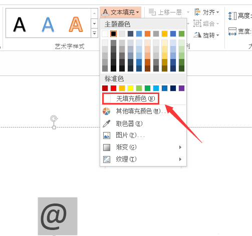 4、点击文本填充选项的下拉箭头在其下拉菜单里找到无填充颜色选项,如图所示: