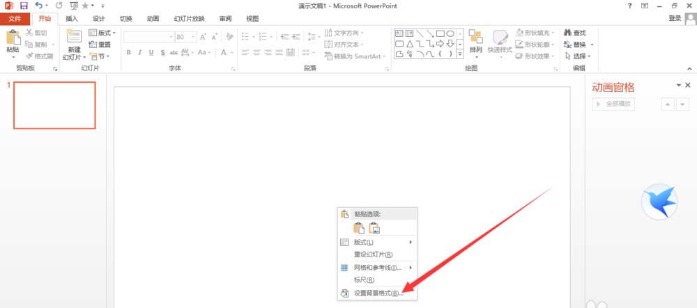 2、在幻灯片界面点击鼠标右键点击设置背景格式