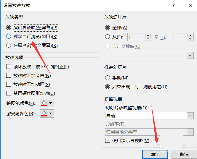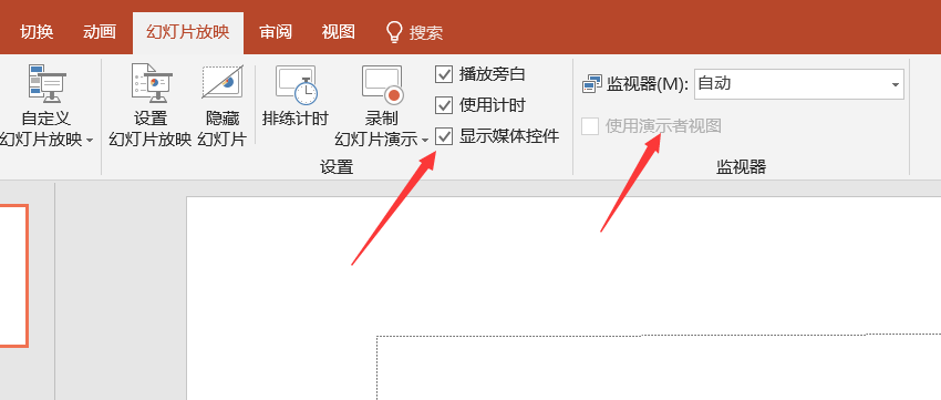 5、勾选完成之后我们回到编辑页面,这里使用了观众自行浏览模式的话就不能使用演示者视图了,但是其他旁白等功能依旧是可以使用的。