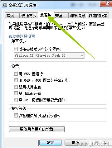 第一步:右击 全衡分班(桌面图标)选项卡,点击最下面的 属相,选择-兼容性,把下面的以管理员身份运行此程序打对勾,最后点确定;