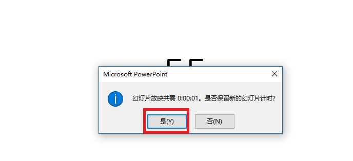 5、进行排练直到最后一张,会弹出提示对话框来提示你是否保留新的幻灯片计时,点击【是】。这样就保留了每一张幻灯片停留时间,在下次演讲时就会自动切换下一张幻灯片。
