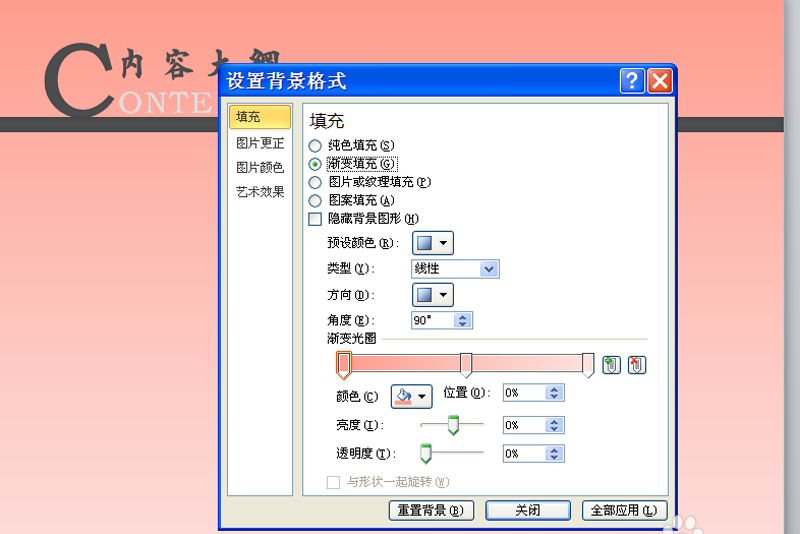 5、右键单击页面调出设置背景格式选项,设置背景为自己喜欢的一种渐变颜色。