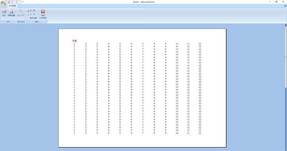 3、在预览里查看表格,页眉字体颜色是彩色的,但打印出来后仍然显示黑色,即使用彩色打印机也是这般效果。