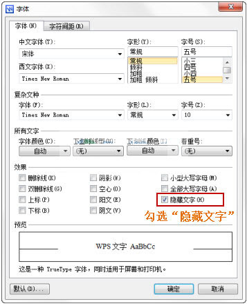 ①选择需要隐藏的内容后,使用快捷键Ctrl+D,打开“字体”对话框,在“效果”中勾选“隐藏文字”一项;