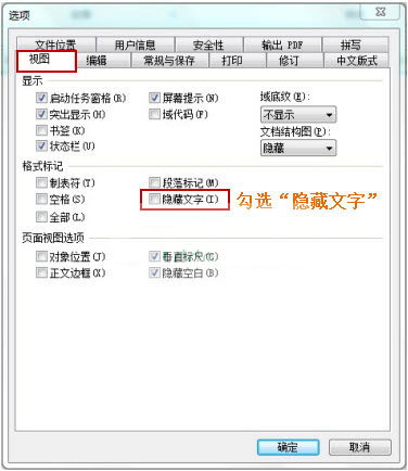 ②点击WPS左上角的【WPS文字】按钮→【选项】→【视图】→【隐藏文字】(勾选后就可以显示已隐藏的内容,若不勾选,则不显示隐藏内容)。