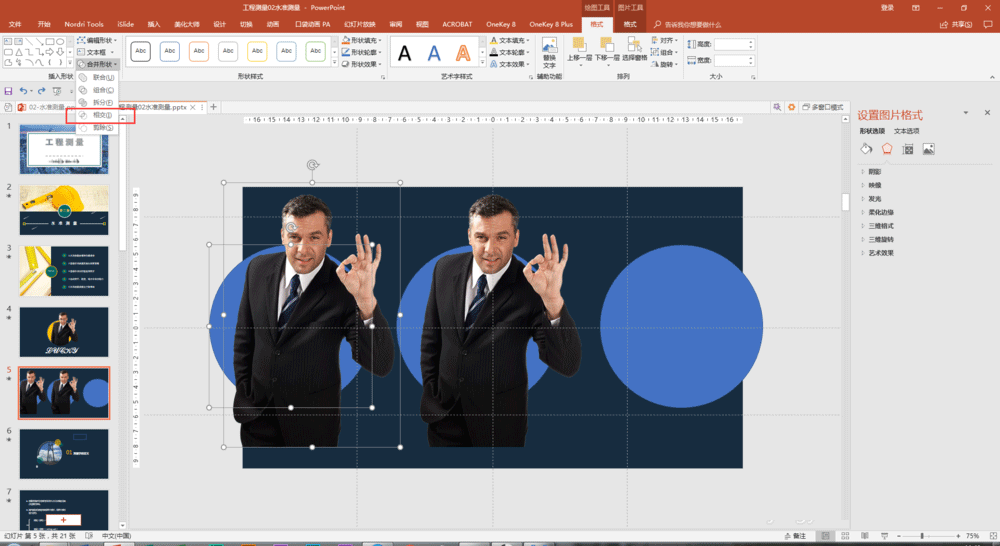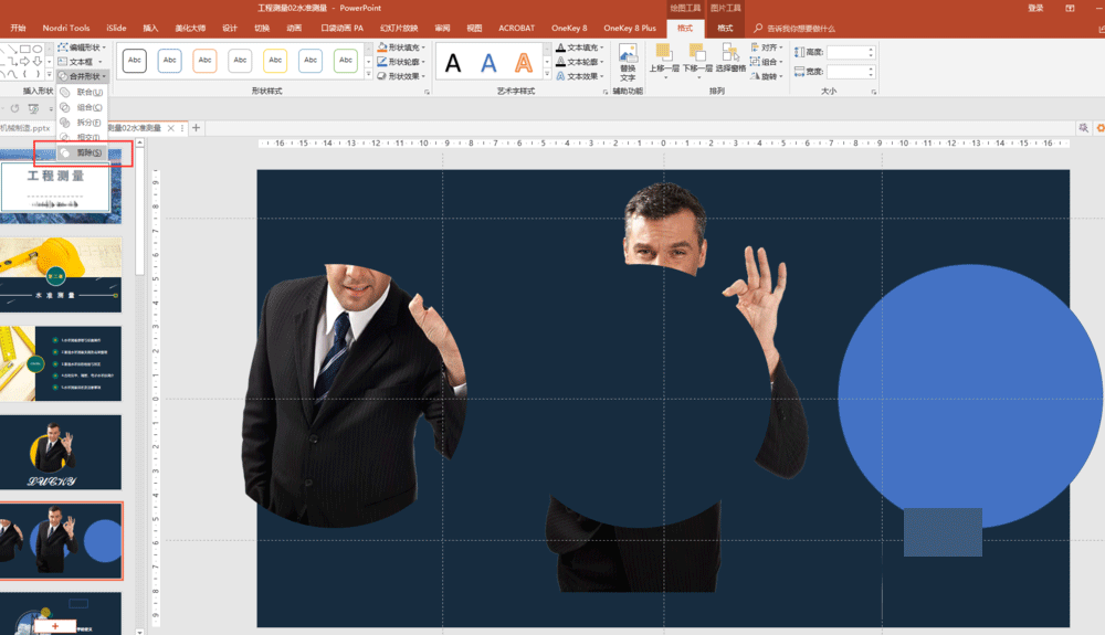6、第二个运用格式中的合并形状减除功能,减去中间部分