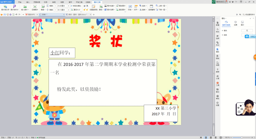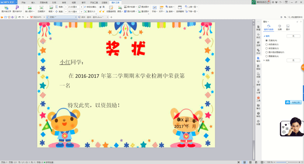 教程结束,以上就是关于WPS文字怎样制作奖状?使用WPS文字制作一个学生奖状模板教程的全部内容,希望大家喜欢!