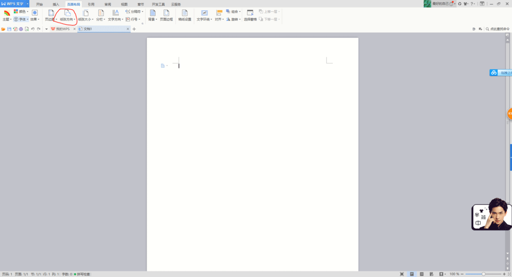 1、首先,我们打开WPS文字,新建一个文档。我们首先要把文字方向设成横向