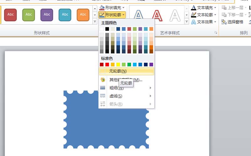 5、选择图形后,执行格式-形状轮廓命令,设置为无轮廓。