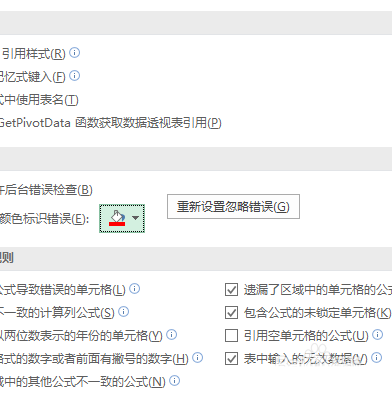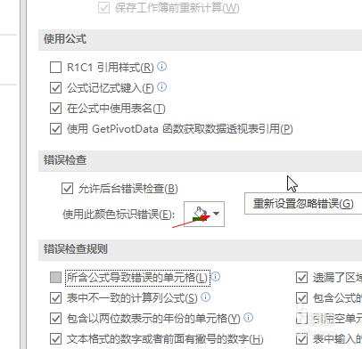 5、点击下方 使用颜色表识错误下拉箭头
