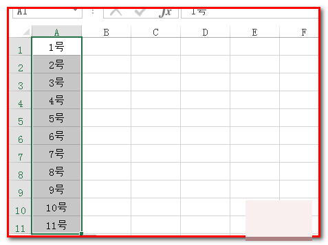 比如,在A1单元格输入:1号