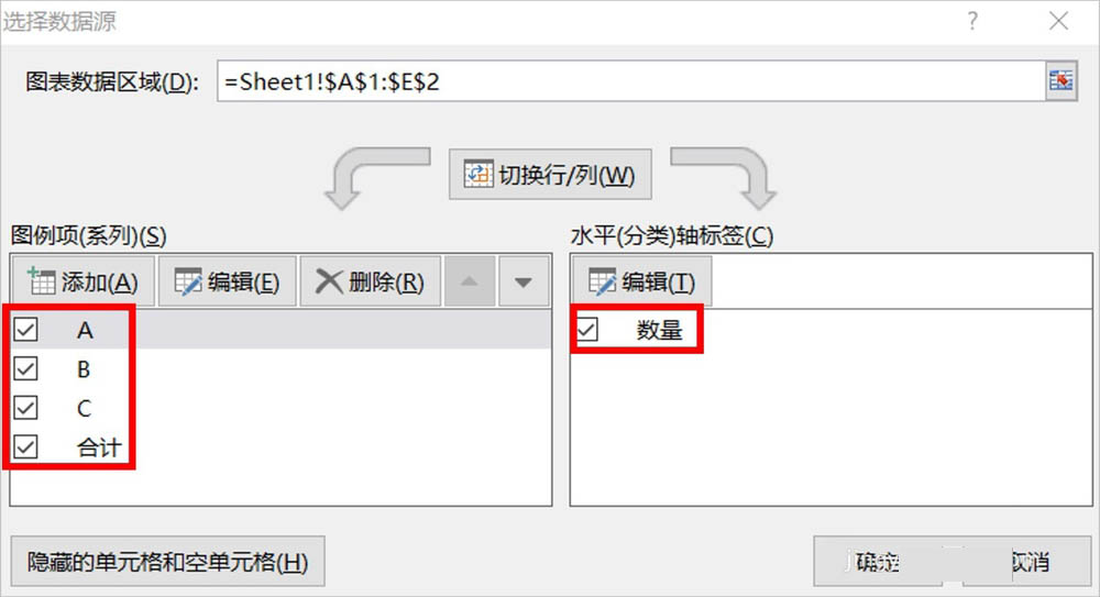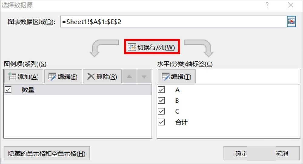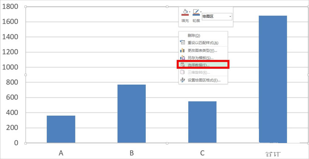 这显然不是我们想要的效果,我们点击"选择数据"进行调整。