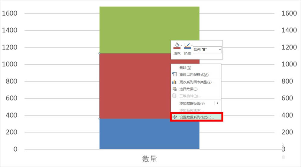 4、设置完成后的效果如下图,已经实现了堆积柱形图的效果。