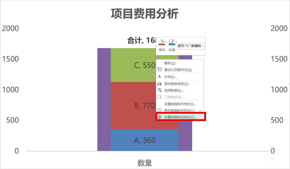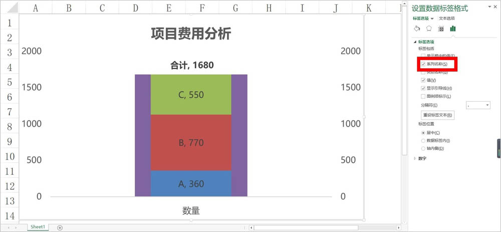 Excel堆积柱形图如何同时显示合计值和构成值?