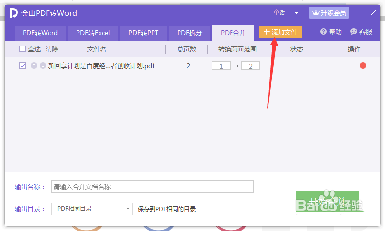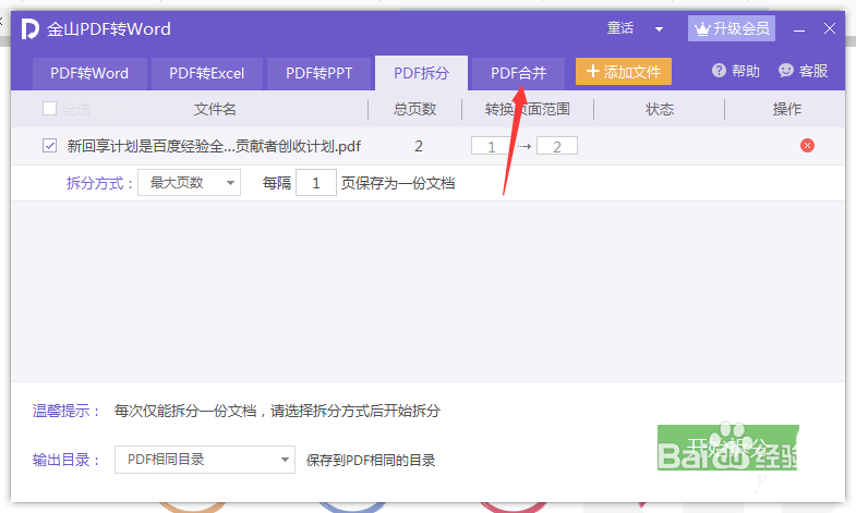 2、这样就会弹出了一个pdf转word的窗口中,进行点击pdf合并的选项。
