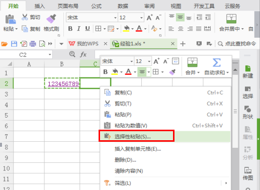然后选择旁边的空白单元格,右击,点击-选择性粘贴(如图);