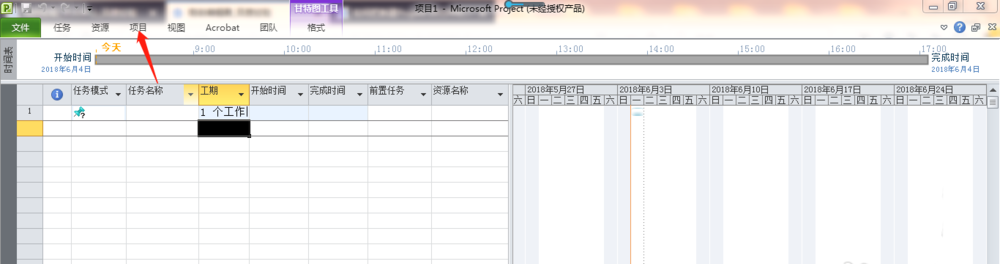 1、首先打开/新建Office Project 文档,然后点击“项目”菜单栏。