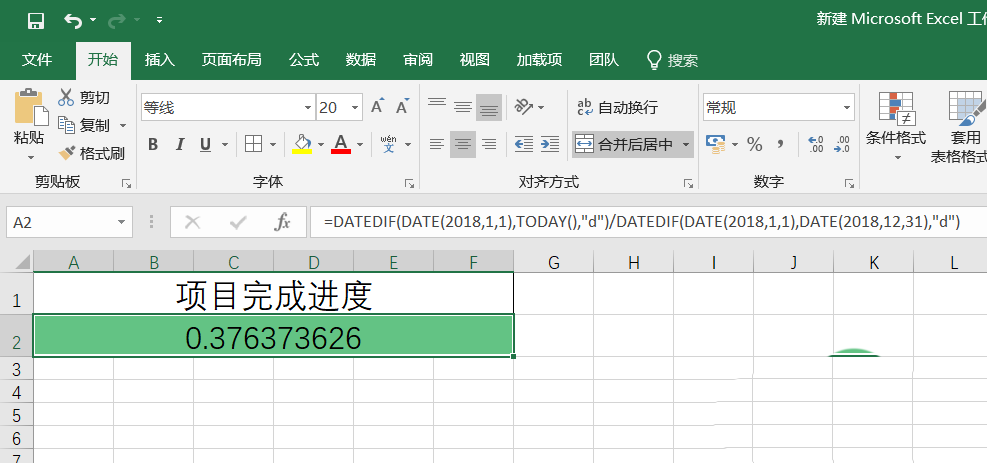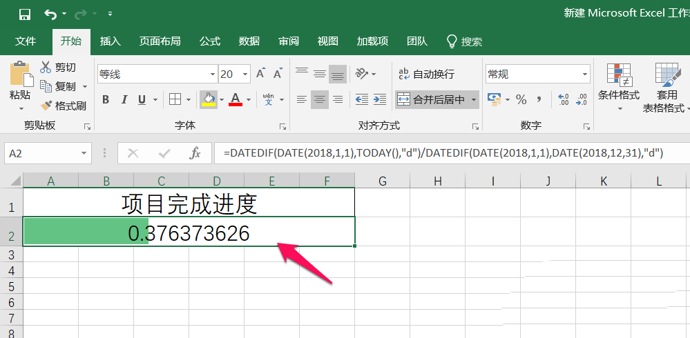 3、回车之后可以看到,今天已过时间占整个2018年的全年时间的0.376373626,如下图: