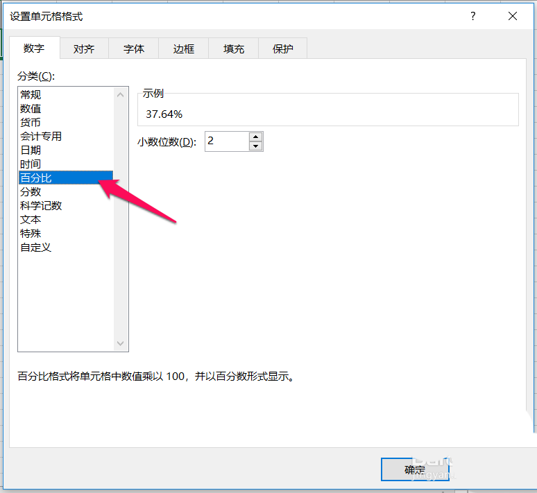 12、在设置单元格格式点击数字->百分比,如下图: