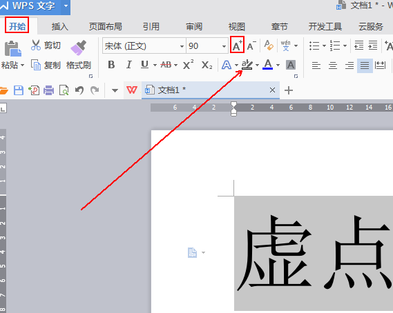 3、使用【开始】工具列表中的【增大字号】工具,将字体放大。