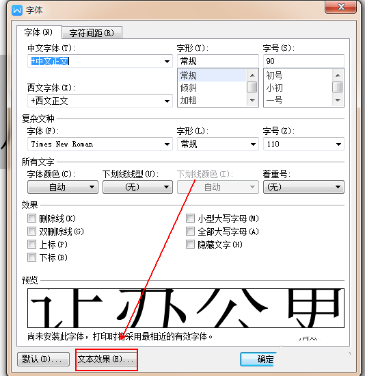 5、在【字体】选项卡下方点击【文本效果】选项。