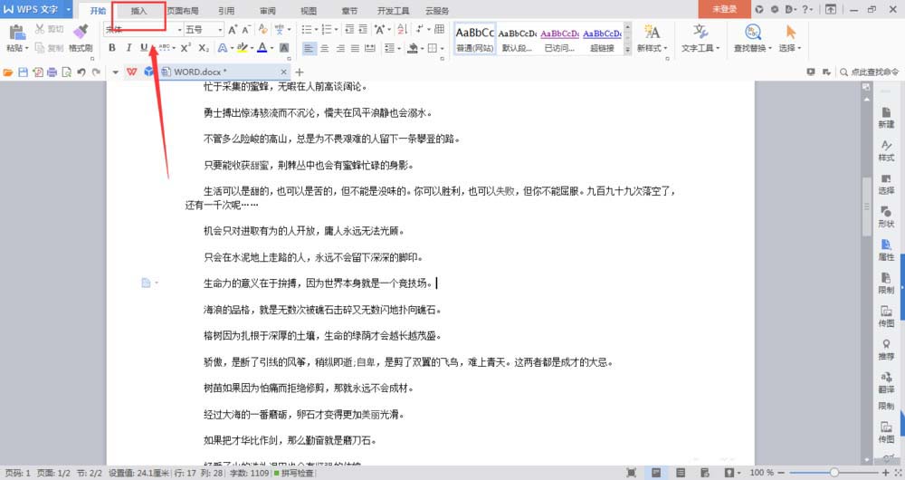 1、打开wps文档,然后选择-插入