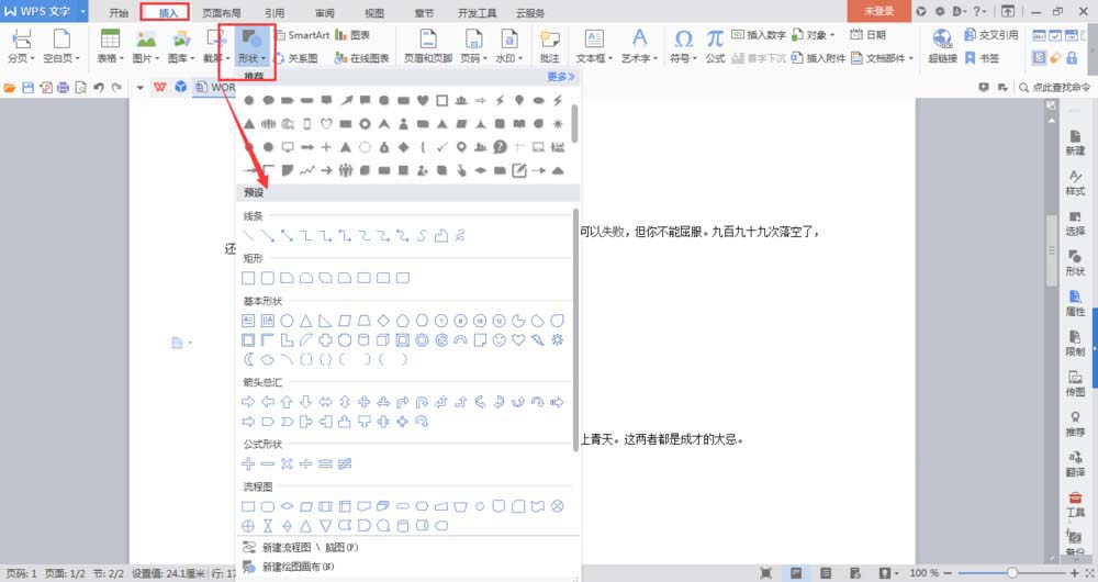 3、选择一个形状,将其拖入到文档中