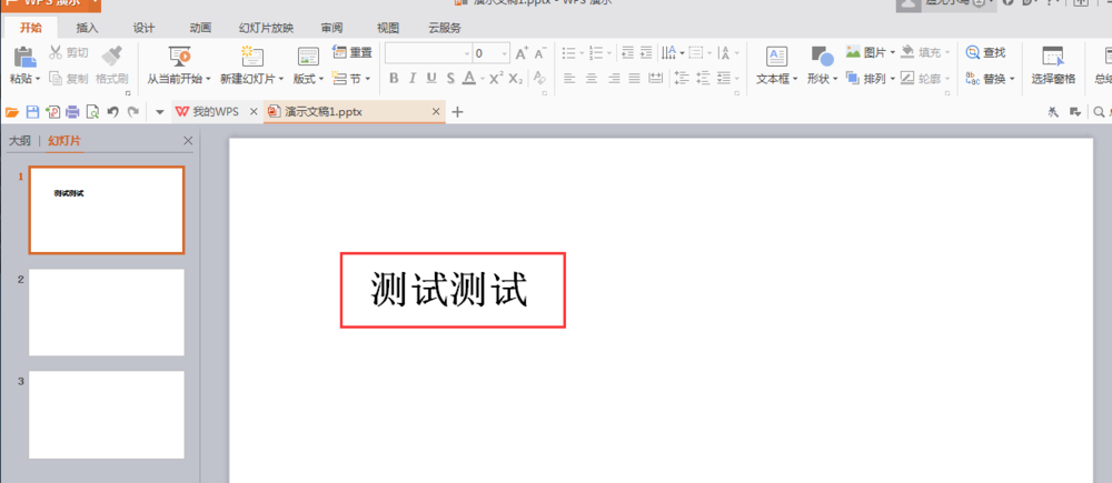 2、可以看到,在第一张幻灯片中有一个文本框。现在我们用这个文本框做实验,想要给它添加轮子动画效果,要如何操作呢?我们一起往下看
