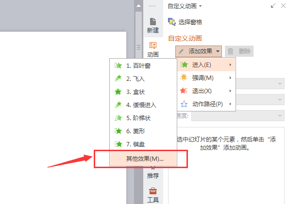 5、根据顺序依次选择(添加动画)--(进入)--(其他效果)