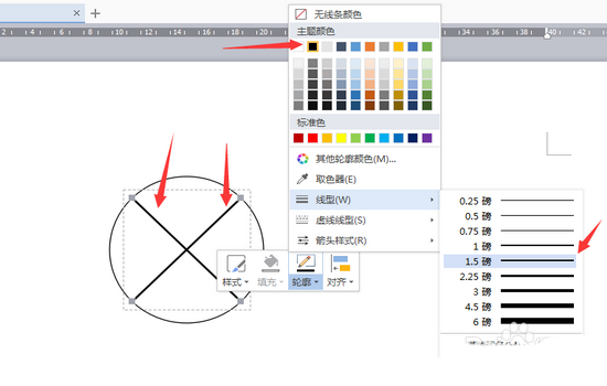 3、设置圆形的充填色为【无色】,外边框为【黑色】如下图所示。