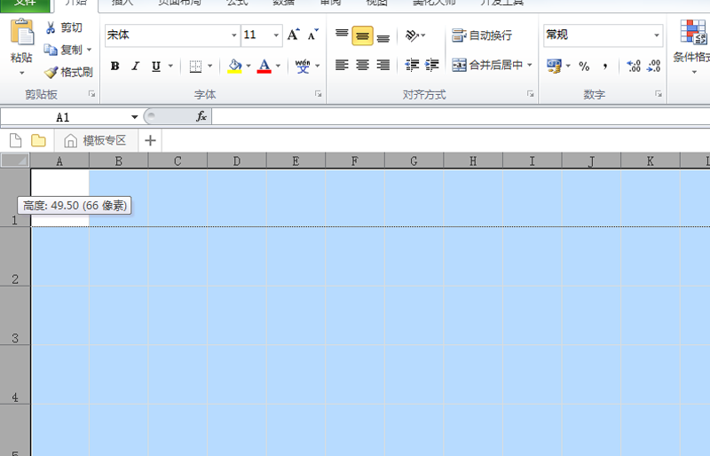 2、通过拖拽行的方式,调整整体行高,调整到66像素,同样方法调整列宽,宽度和行高一样。