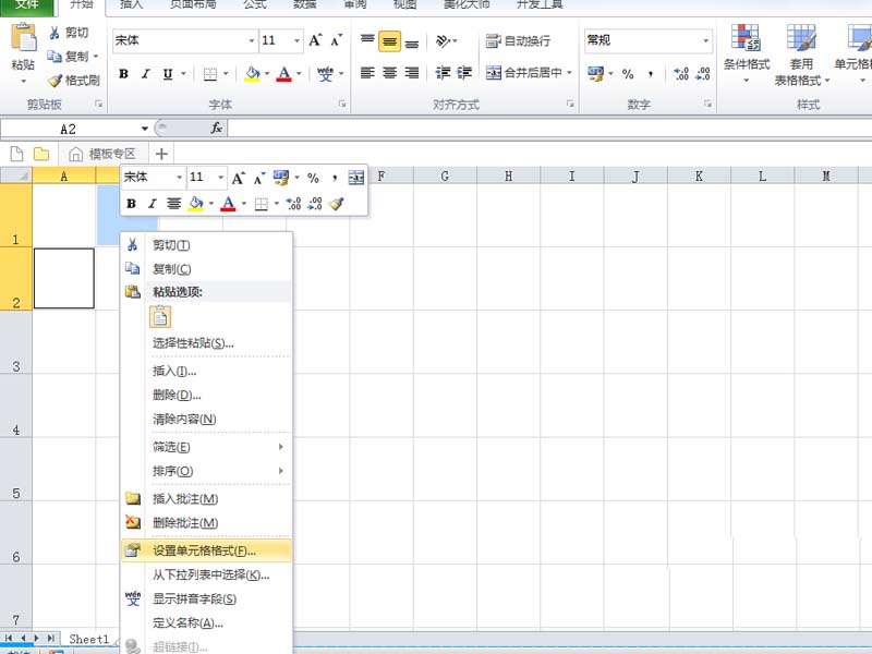 3、按住ctrl键选择单元格b1和a2,右键单击选择设置单元格格式选项。