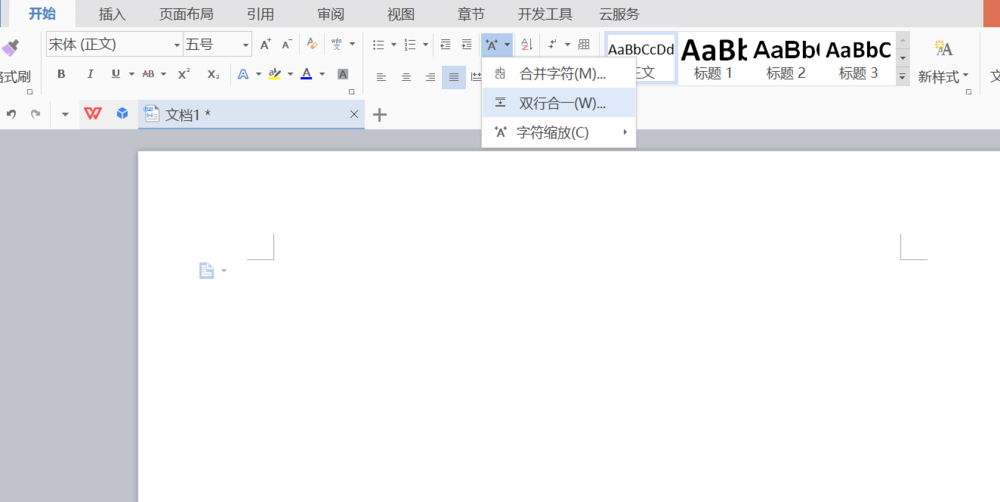 1、打开WPS文字。选择如图所示,双行合一。