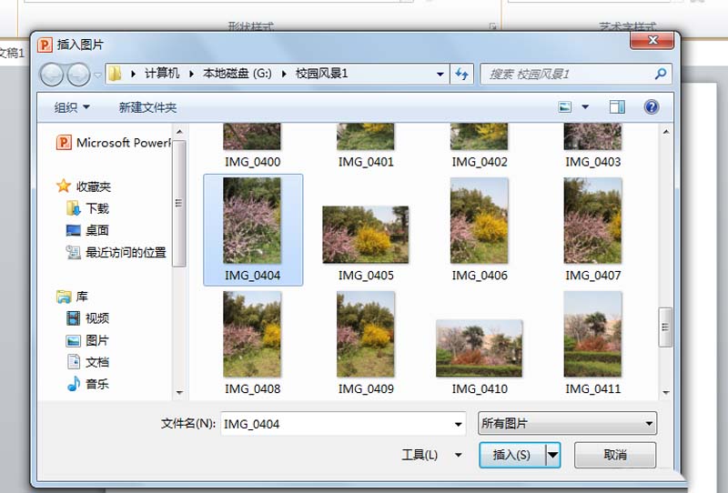 6、依次点击后从插入图片对话框中选择需要插入的图片即可,播放查看效果。
