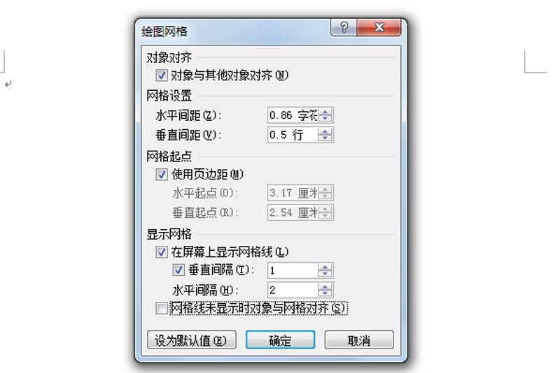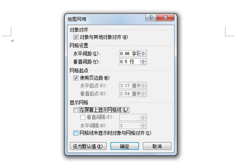 5、勾选在屏幕上显示网格线选项,采用默认参数,点击确定按钮。