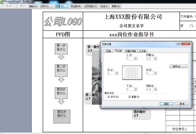 6、打印预览,调整页面边宽等参数,一个岗位尽量作为一页,如内容多,也可分两页。