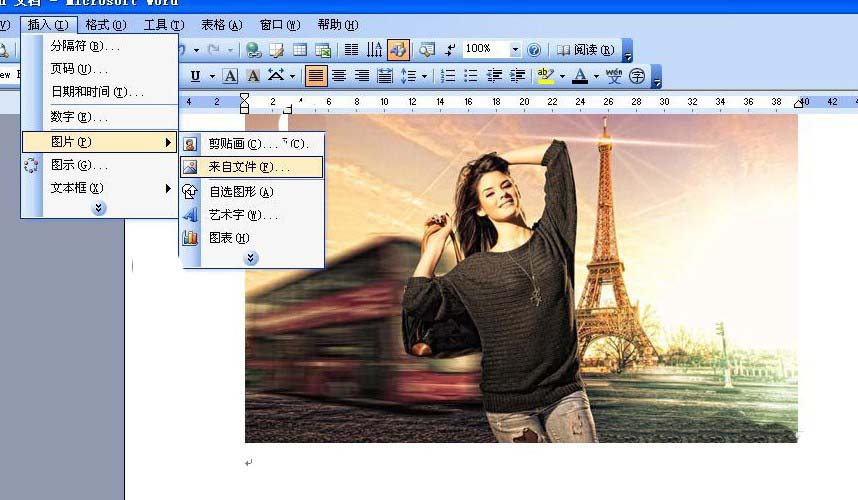 1、在Word中,任意插入一张图片。