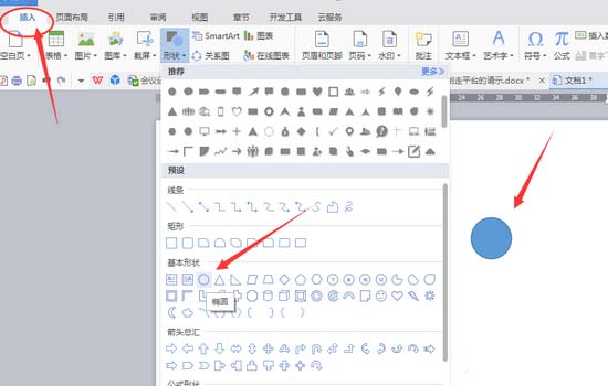 2、使用【形状】工具的中【椭圆】,画出一个圆形。小技巧,要画一个正规的圆形,我们可以点击【椭圆】,在画之前,按住【Shift】键,再画,就是一个正规的圆形了。