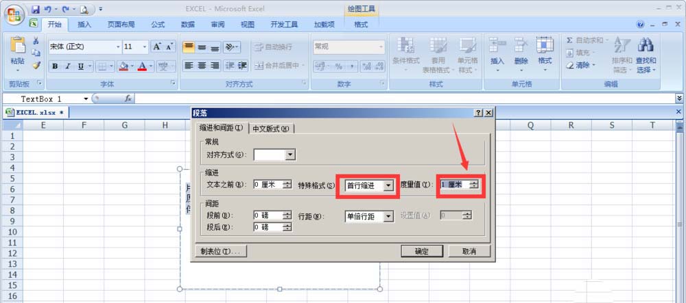 5、首行缩进的尺度根据自己的需要设置,然后点击确定