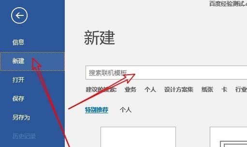 3、接下来再点击新建菜单项,在右侧窗口中会打开新建窗口,在上面找到搜索框。
