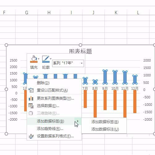 7、然后添加柱形图数据标签