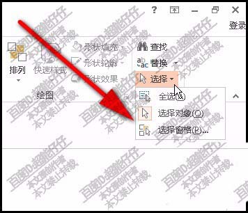 4、点击选择的下拉按钮,弹出一列表,从中,再点击:选择窗格
