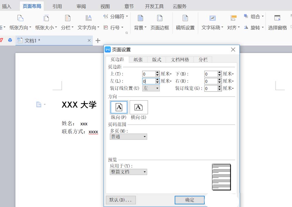 4、上、下、左、右页边距都设置为0。如图。