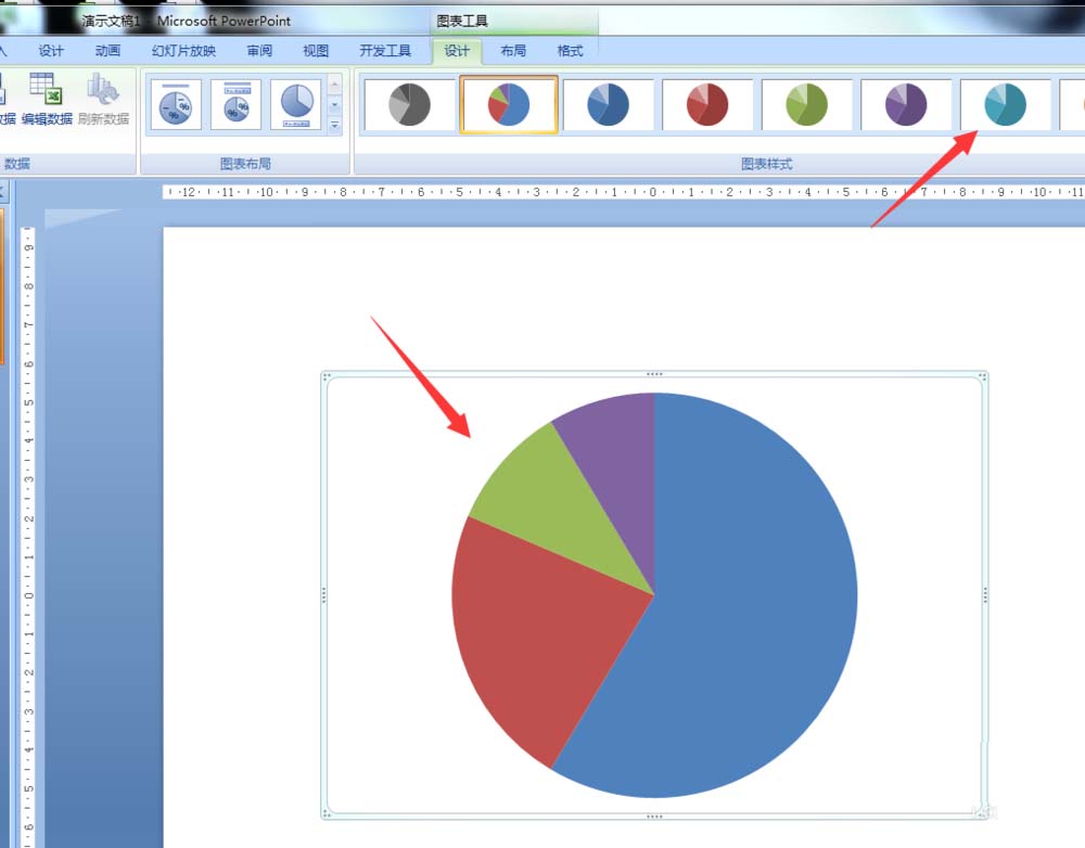 4、像下图显示的,只有一个饼图,然后可以更改饼图的样式,换个颜色。