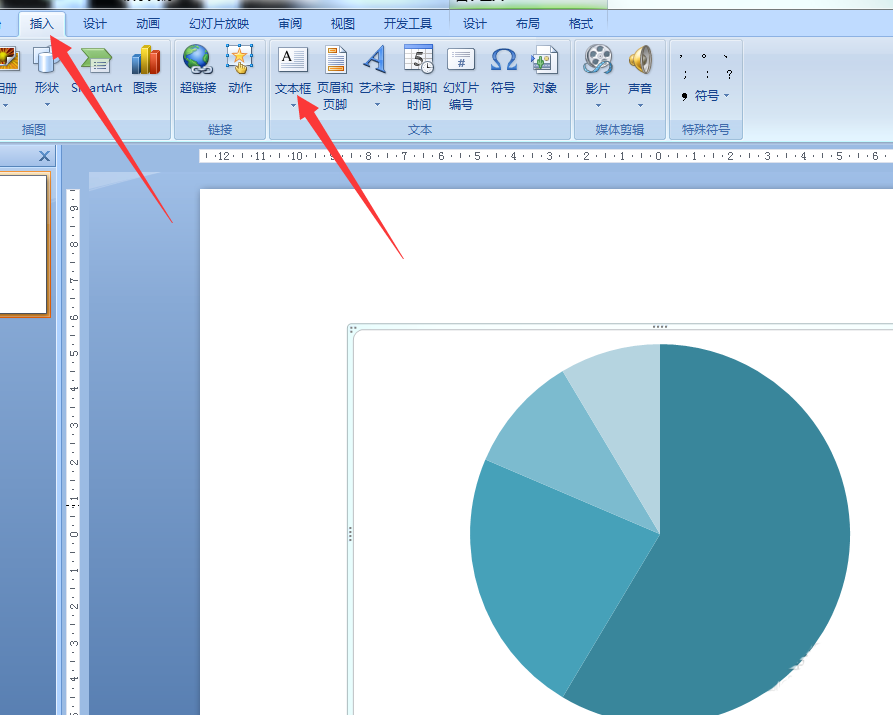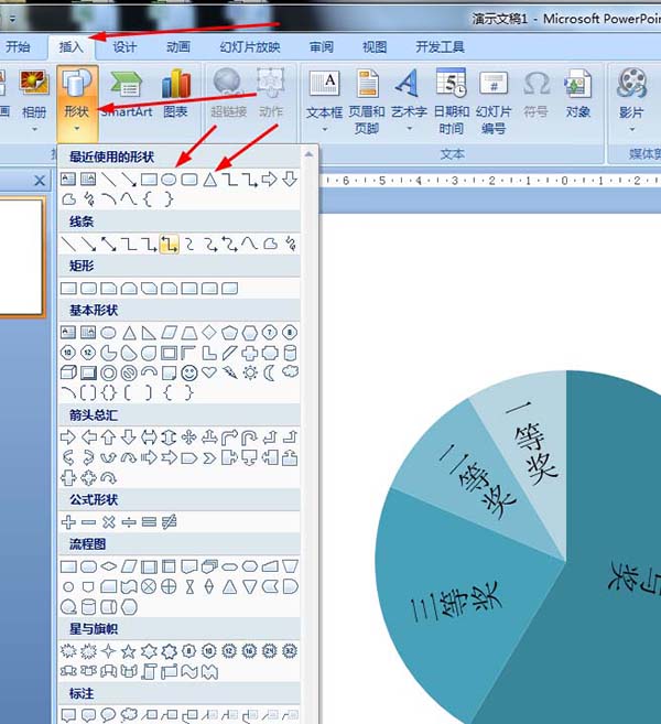 5、然后点击插入文本框,要用垂直的文本框,在饼图里面插入奖项。