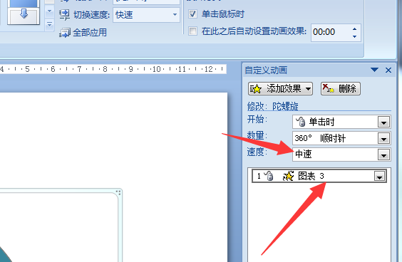 8、接着把旋转的速度改成【非常快】,然后双击动画效果-图表3。