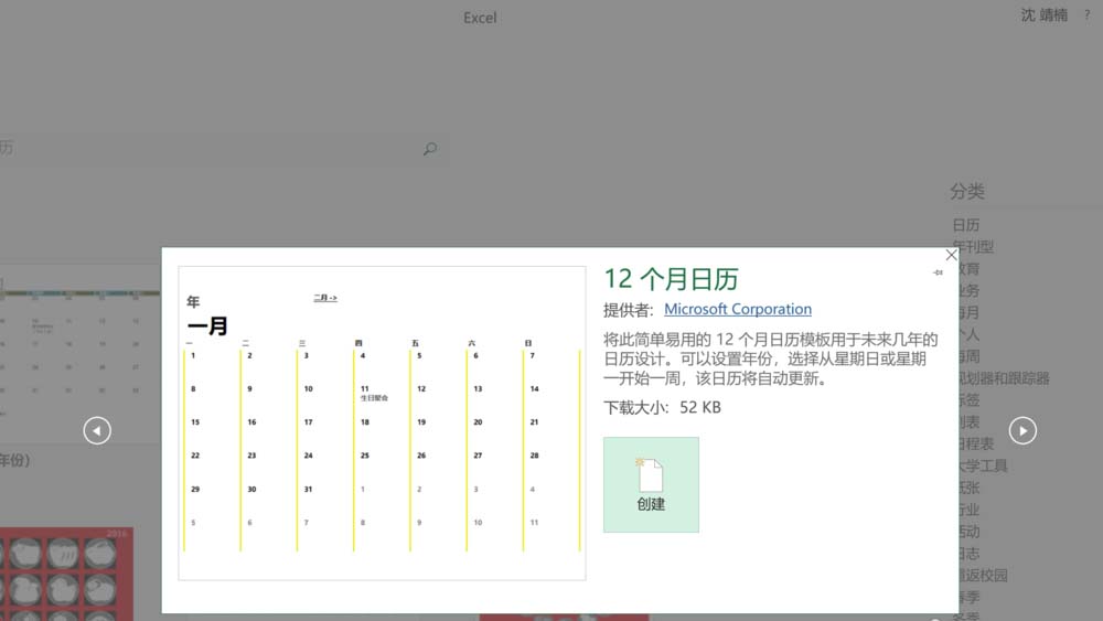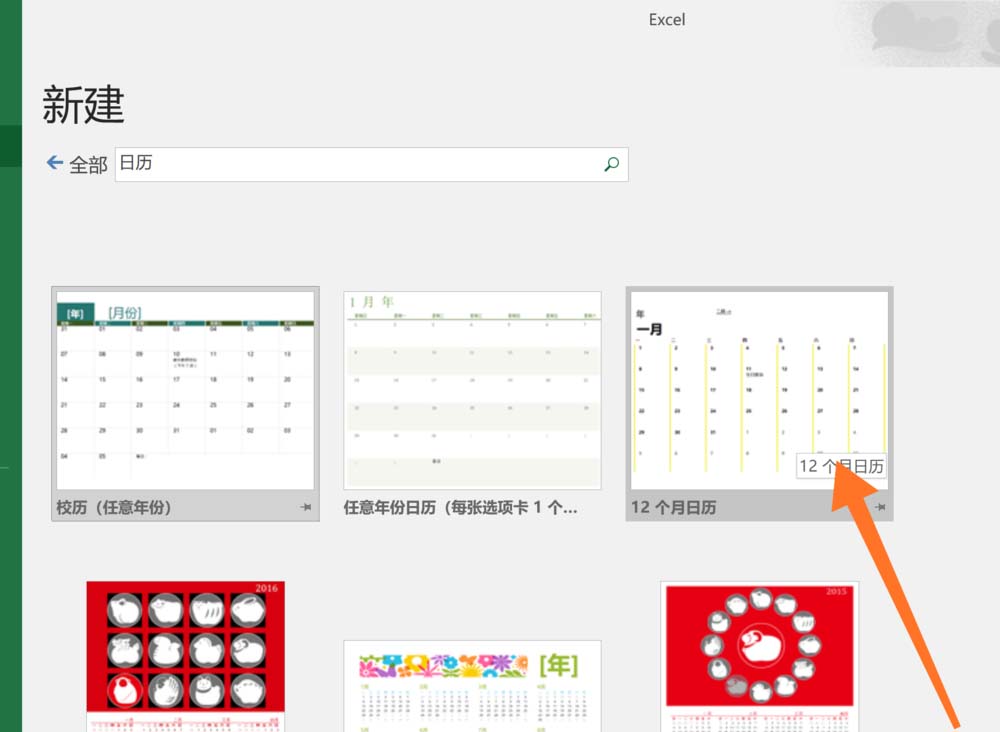 4、同时你还可以选择其他你喜欢的,或者需要使用的款式进行操作,比方说我用的就是12个月的日历
