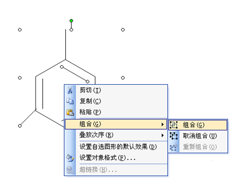 6、再次选择直线工具,绘制三条直线,调整相对位置,选择所有的图形,右键单击选择组合图形-组合命令。