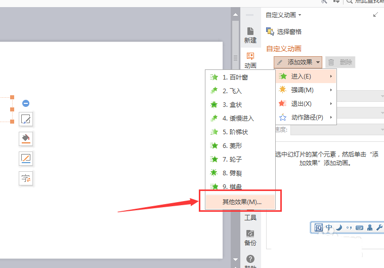 5、在下拉选项中选择(进入)--(其他效果)