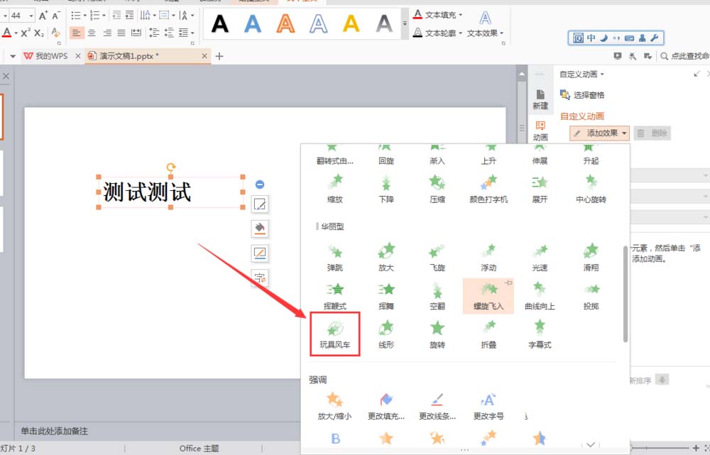 WPS可以给文字添加玩具风车动画效果,该怎么添加呢?下面我们就来看看详细的教程。
